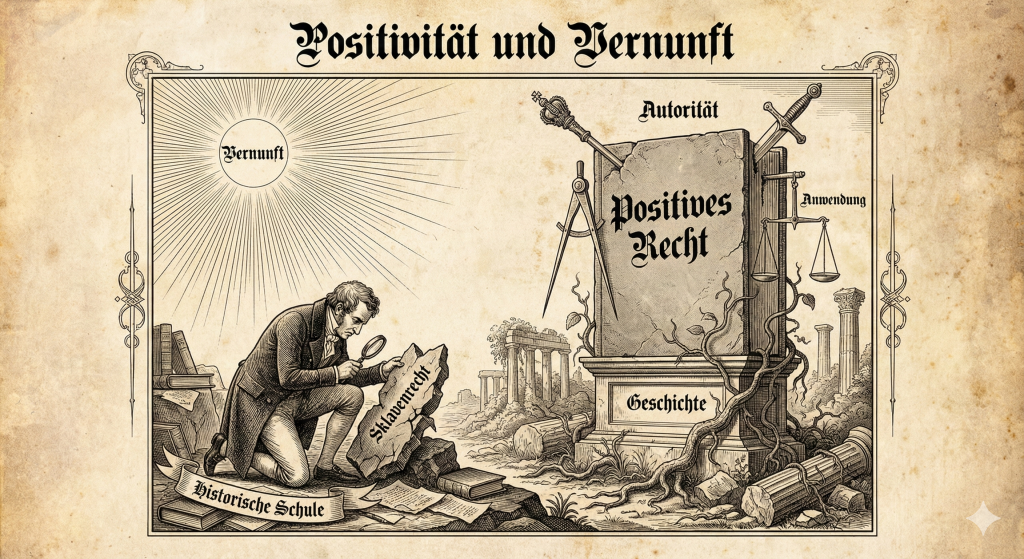 Das Recht ist positiv überhaupt a) durch die Form, in einem Staate Gültigkeit zu haben, und diese gesetzliche Autorität ist das Prinzip für die Kenntnis desselben, die positive Rechtswissenschaft. b) Dem Inhalte nach erhält dies Recht ein positives Element α) durch den besonderen Nationalcharakter eines Volkes, die Stufe seiner geschichtlichen Entwicklung und den Zusammenhang aller der Verhältnisse, die der Naturnotwendigkeit angehören; β) durch die Notwendigkeit, daß ein System eines gesetzlichen Rechts die Anwendung des allgemeinen Begriffes auf die besondere von außen sich gebende Beschaffenheit der Gegenstände und Fälle enthalten muß – eine Anwendung, die nicht mehr spekulatives Denken und Entwicklung des Begriffes, sondern Subsumtion des Verstandes ist; γ) durch die für die Entscheidung in der Wirklichkeit erforderlichen letzten Bestimmungen.